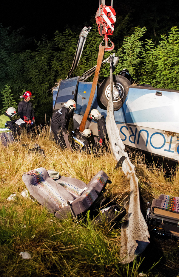 Svájci busz borult fel az M1-es autópályán, tizennégy sérült - FOTÓK