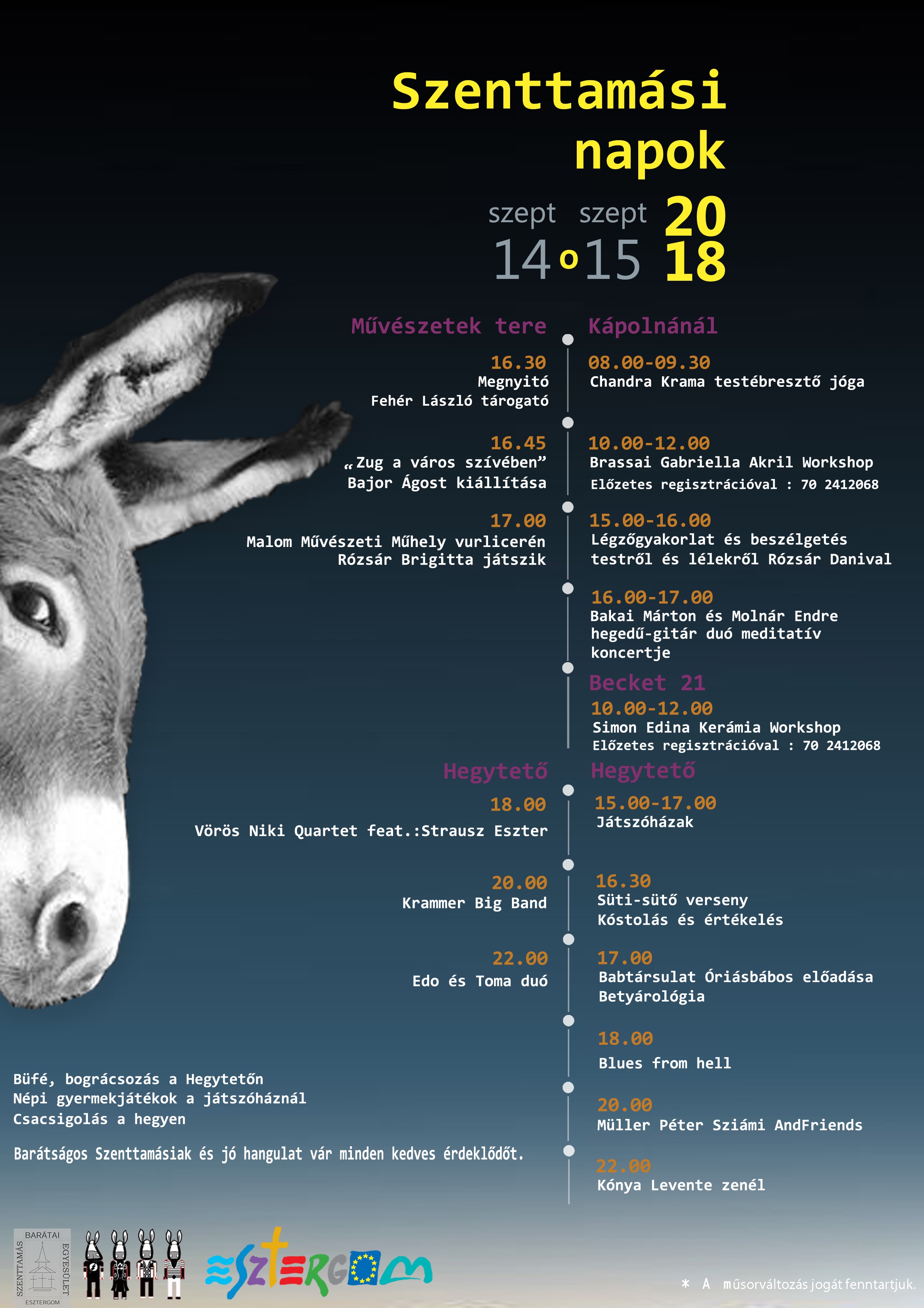 A barátságos szenttamásiak idén is megrendezik a Szenttamási napokat. Szeptember 14-én és 15-én szórakoztató programok sora várja a közönséget. Fellép többek közt Müller Péter Sziámi együttese is.