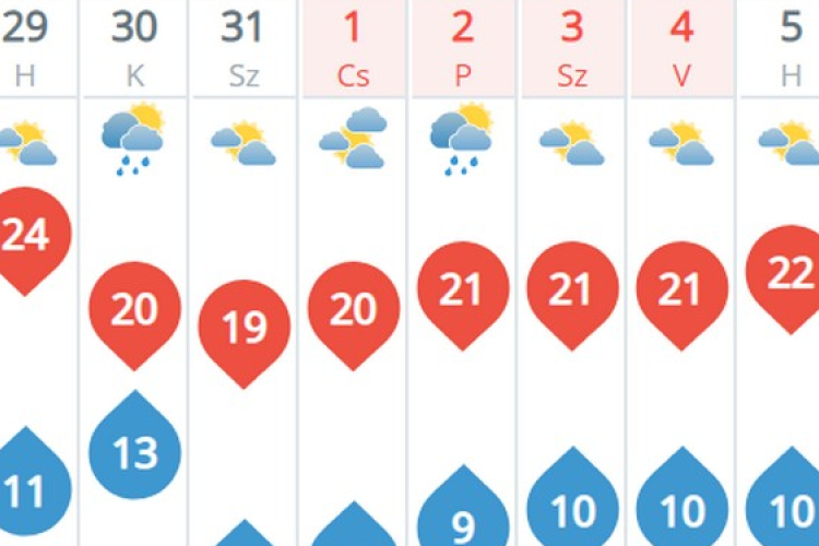 Továbbra is 20 fok feletti maximális nappali hőmérsékletre számíthatunk a héten.