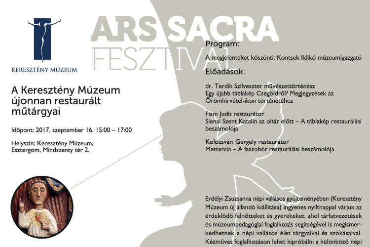 Idén is megrendezi az Ars Sacra programsorozat a Keresztény Múzeum, mely nyílt napot is tart.