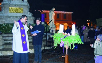 Közösen gyújtotta meg az első adventi gyertyát a Széchenyi téren Romanek Etelka polgármester és Harmai Gábor plébános atya.