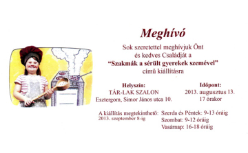 Szakmák a sérült gyerekek szemével címmel nyílik kiállítás a Tár-Lak Szalonban augusztus 13-án Esztergomban.
