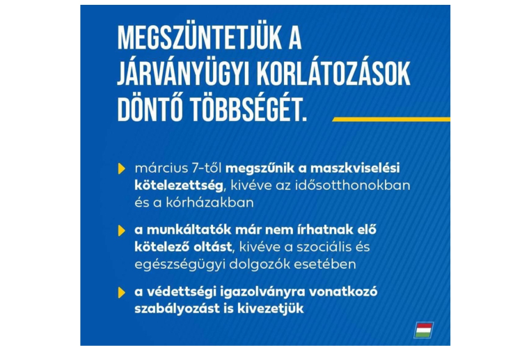 Kivezeti Magyarország a koronavírus-járvány miatti korlátozások döntő többségét, mivel a járvány ötödik hulláma a végéhez közeledik - jelentette be a Miniszterelnökséget vezető miniszter csütörtökön a Kormányinfón.