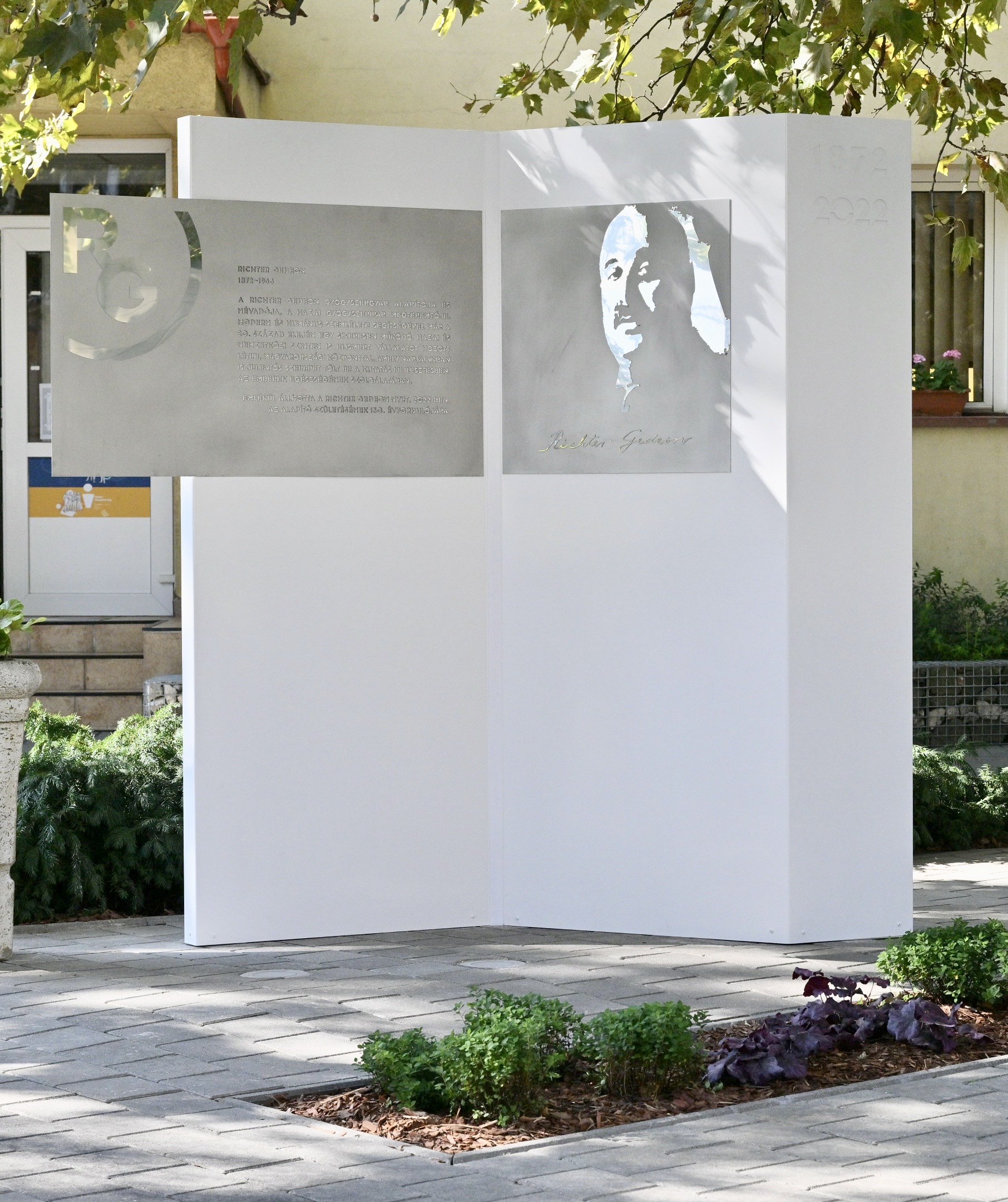 Dorog, 2022. szeptember 23. – A Richter Gedeon születésének 150. évfordulója alkalmából emelt emlékművet Dr. Tittmann János Dorog város polgármestere, Dr. Oláh Ruben Richter Gedeon Nyrt. hatóanyag-gyártási igazgató-helyettese, és Garai Zoltán a Richter Gedeon Nyrt. dorogi gyáregységének főmérnöke avatta fel.