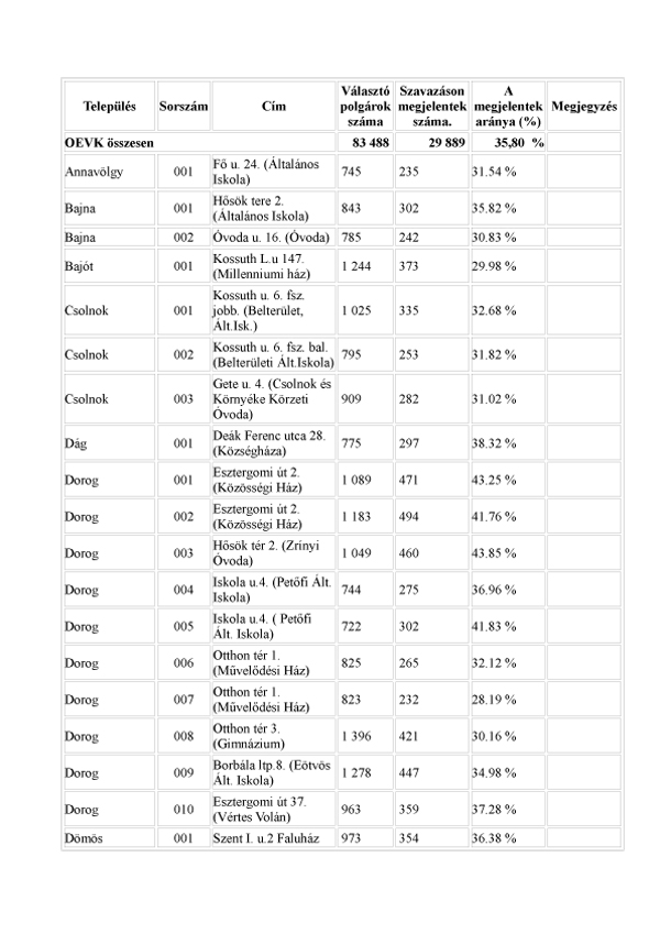 Országosan 34,33 százalék, Esztergom térségében pedig 35,8 százaléko a megjelentek aránya a legutóbbi 13 órás adatok alapján a mai országgyűlési választásokon.